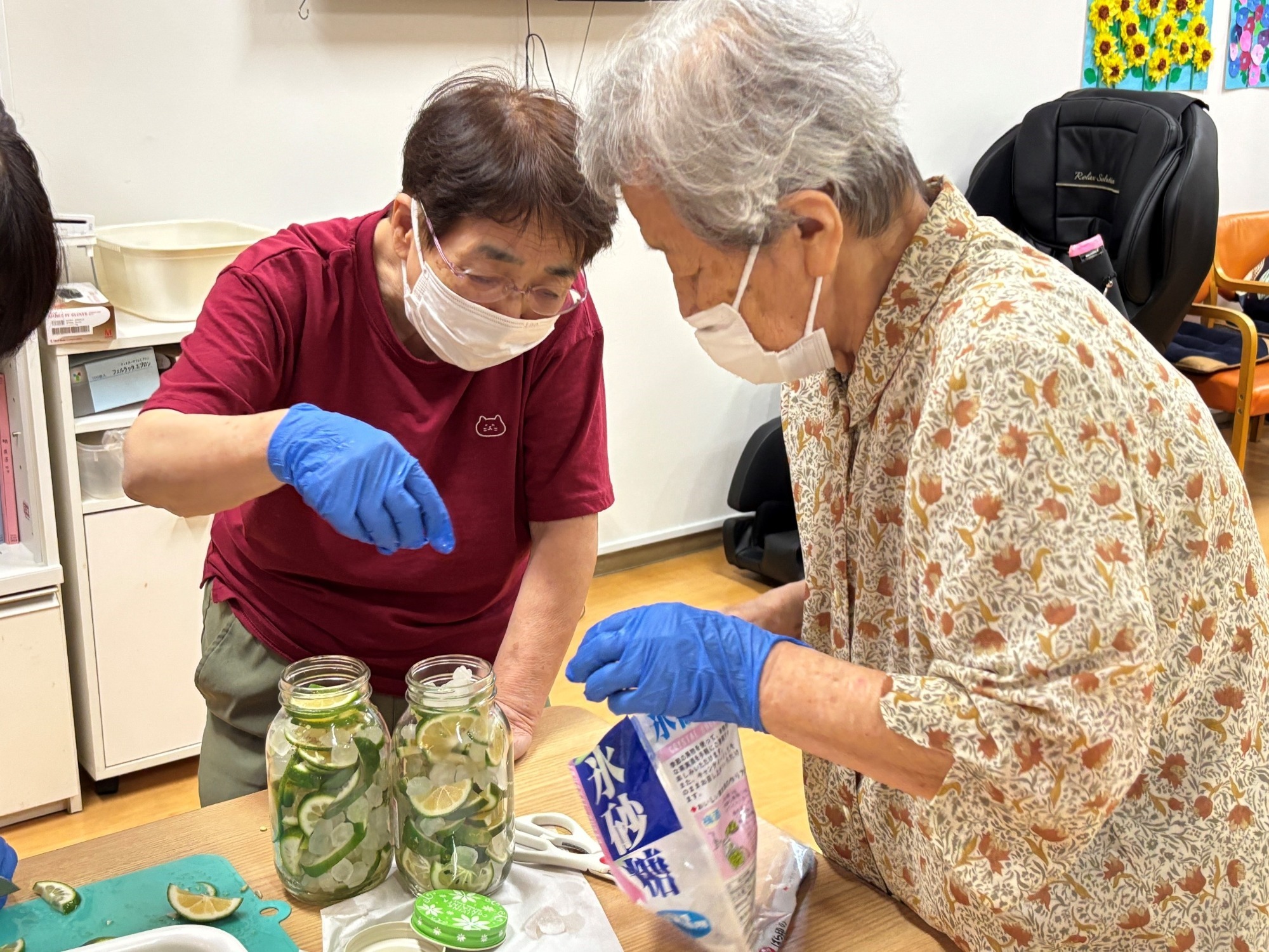 暑さも少しずつやわらぎ、秋の訪れを感じる季節となりました。日中はまだ汗ばむこともありますが、朝夕には涼しい風が吹き、虫の音も聞こえます。9月と言えば「敬老の日」があります。デイケアでは感謝の気持ちを込めて今年も「敬老会」を行う予定です。お楽しみに♪さて、8月は季節湯としてレモン湯を実施しました。レモンの香りにはリフレッシュ効果があり、お風呂に広がるさわやかな香りに「気分がすっきりする」「いい香り」といった声が聞かれました。これからも皆様に心地よく過ごしていただけるよう、月ごとの季節湯を企画してまいります。
